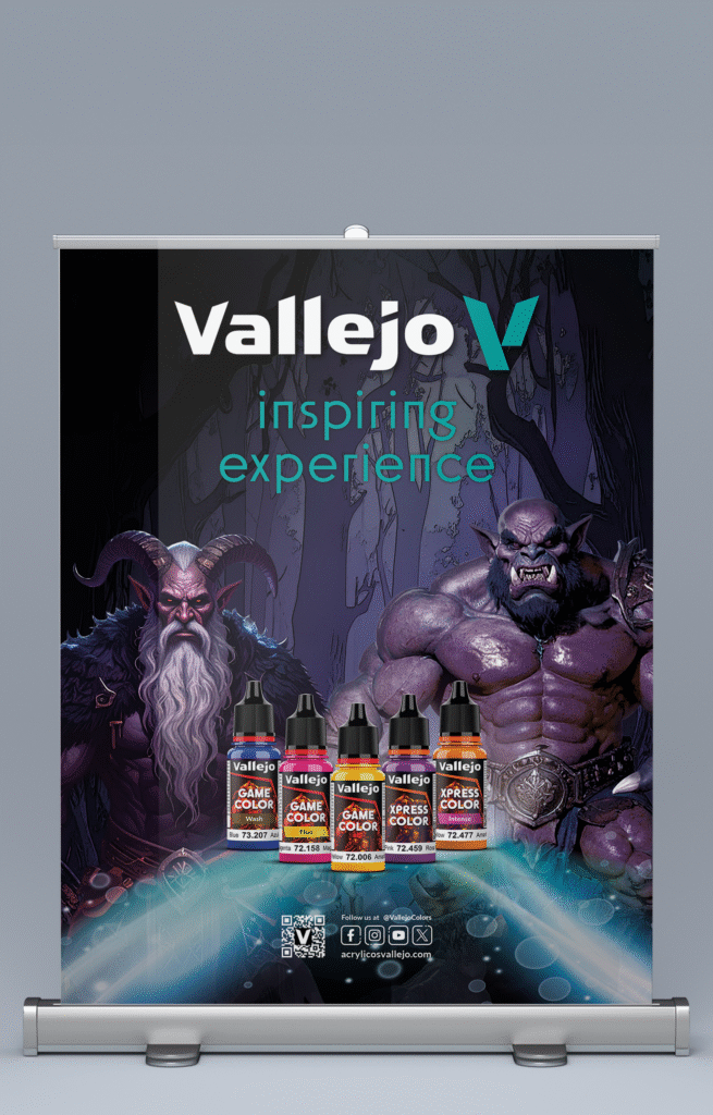 The series of roll-ups provided Acrylicos Vallejo with a strong and versatile visual presence at trade fairs and events worldwide. They have become an essential promotional tool, helping the company connect with audiences, enhance brand recognition, and showcase their product lines in a professional and engaging way.