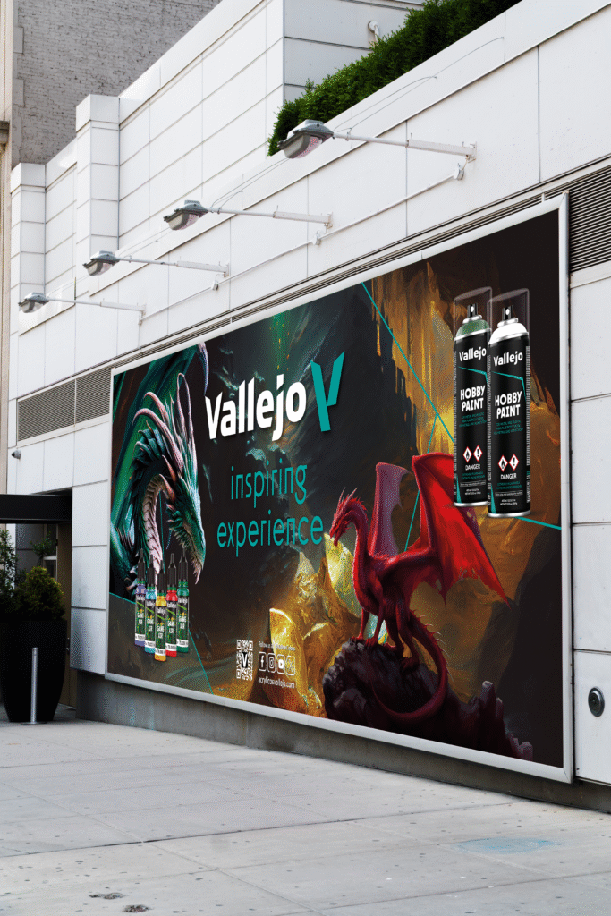 We produced a cohesive collection of roll-ups, carefully balancing striking visuals with clear product information. By integrating high-impact imagery, clean typography, and consistent use of brand colors, the roll-ups not only highlight Vallejo’s products but also reinforce the brand’s innovative and creative spirit. The adaptability of the layouts allowed each design to be effective regardless of size or display context.